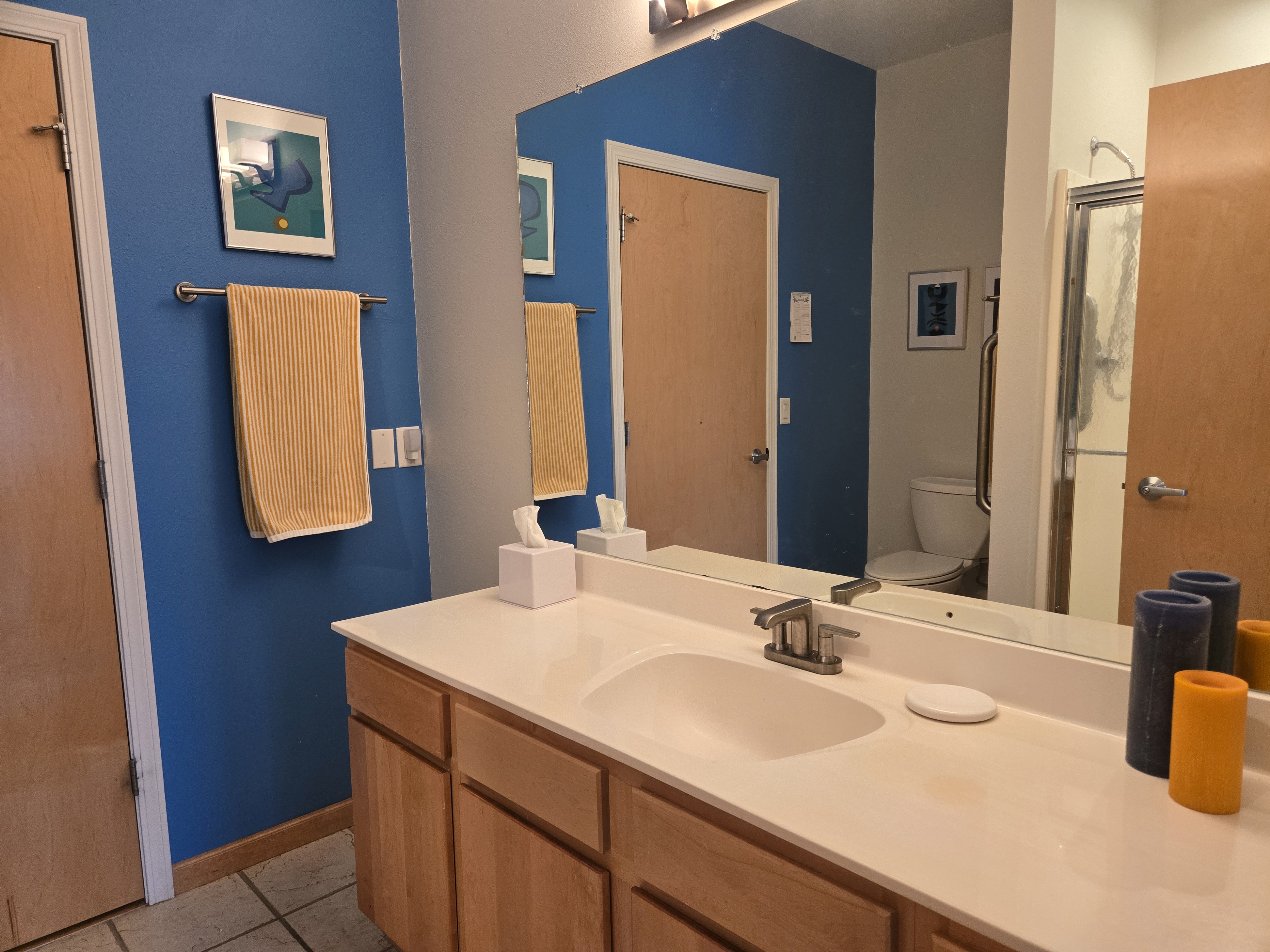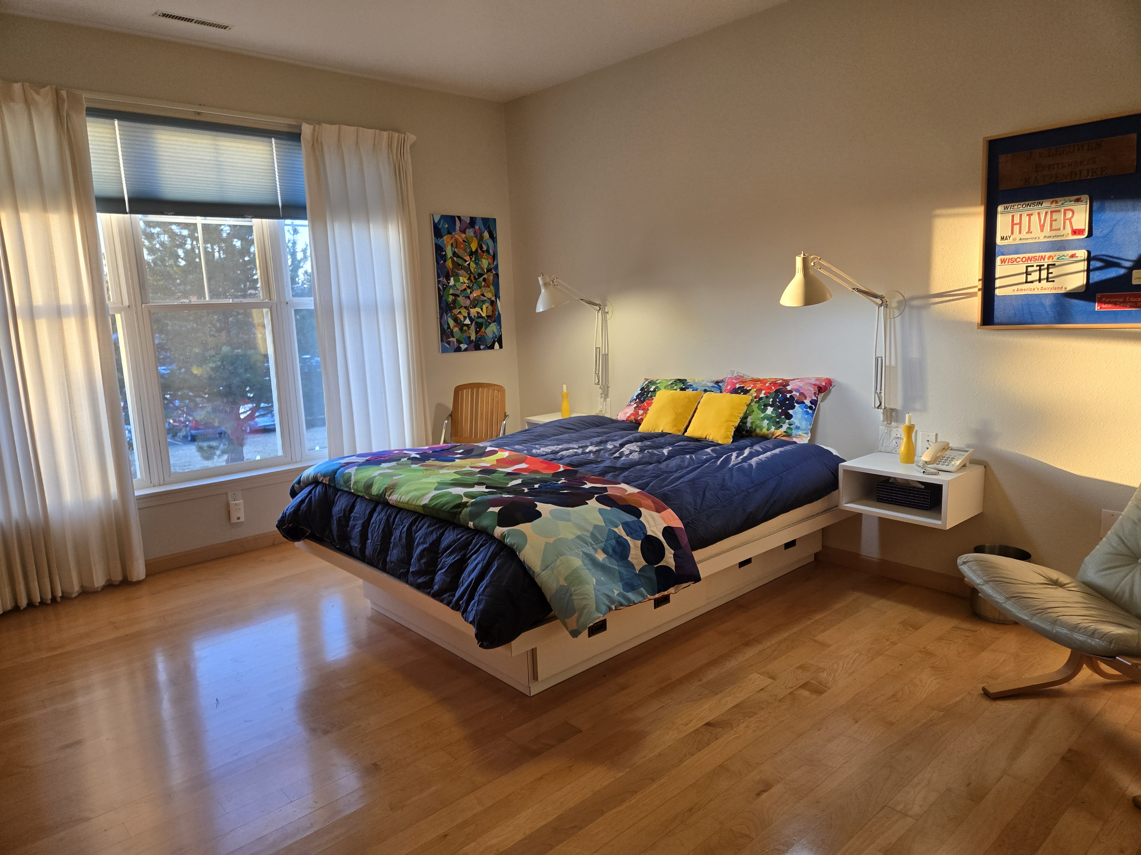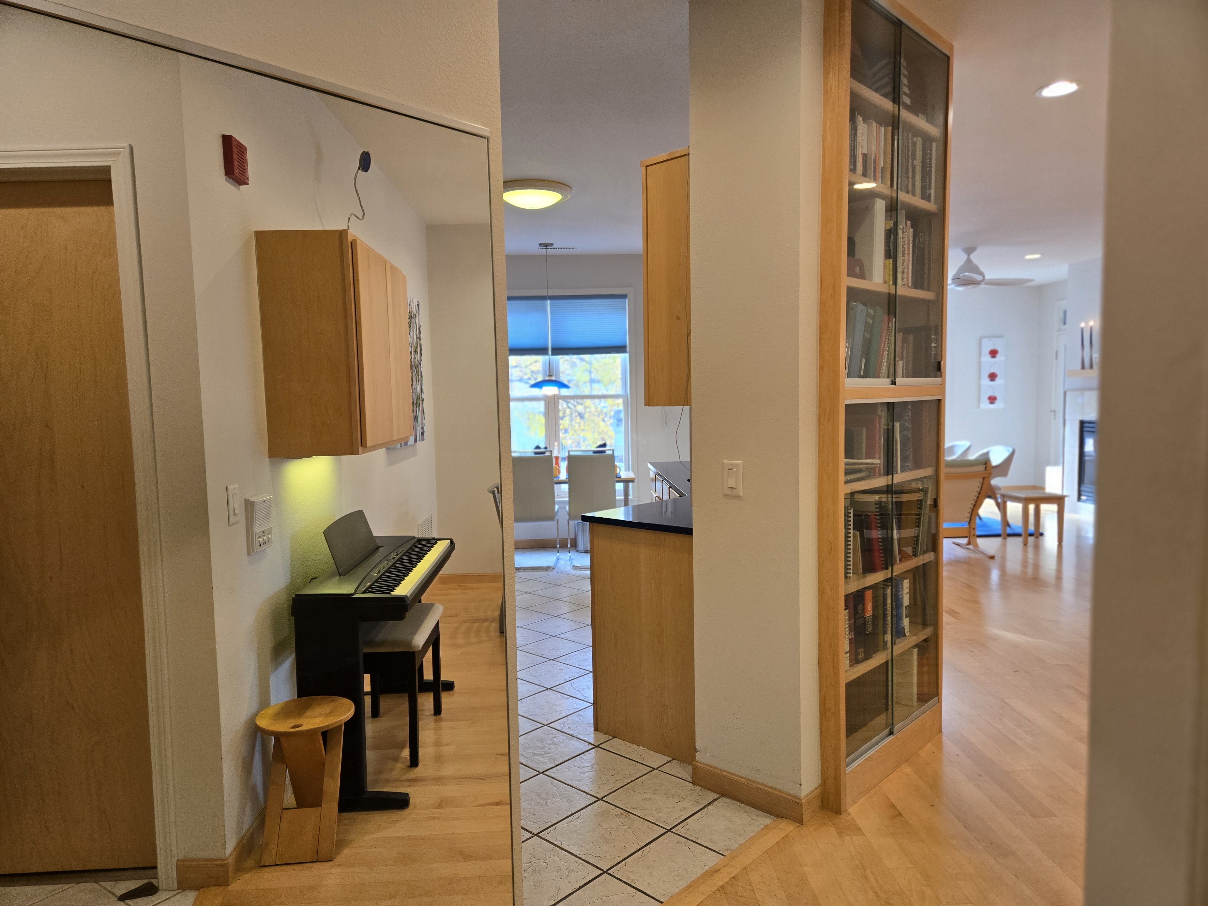 Your guests have two ways to enter; buzz them in from this accessible front entrance on Cedar Street or through a doorway to your porch or patio.